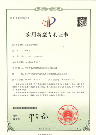 Ningbo Zhenhai Xiangpeng Tour&Leisure Products Co.,Ltd, which was founded in 2005. The company specialized in researching and manufacturing self-inflating mattress and series products. We have the self-owned brand, access to trade import and export rights, enough experience of undertake all kinds of OEM and ODM orders from domestic and foreign customers. We insist on the strategic positioning of “professional、innovative、responsible、superior” and concept of “integrity promise makes double win-win ” on business.